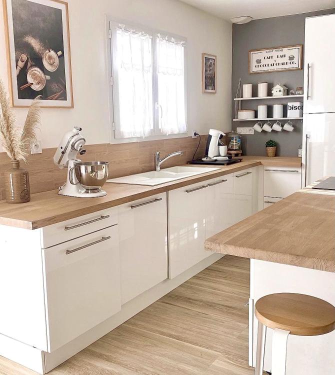 A influenciadora @home_style_by_meila decidiu recentemente mudar o chão da sua cozinha. Fã da tendência escandinava, sentiu-se rapidamente tentada a escolher as tábuas com efeito madeira.