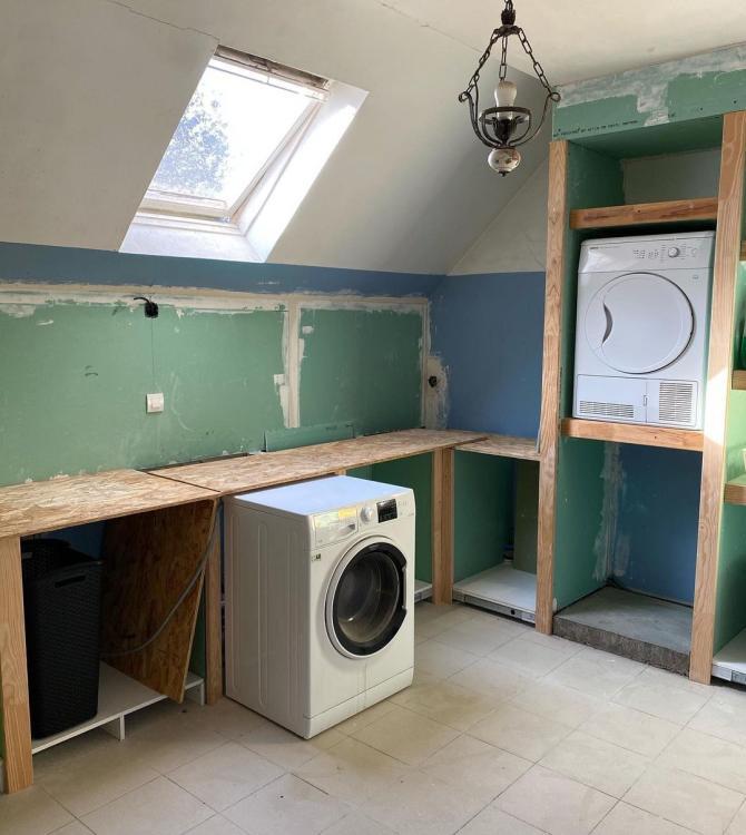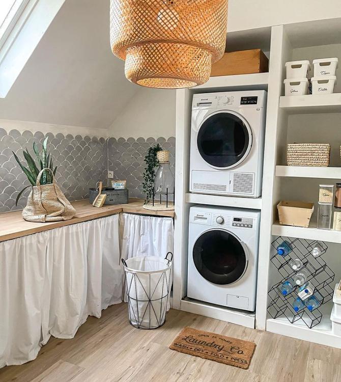 Quem disse que uma lavandaria não pode ser chique? Já que passamos tanto tempo neste local que nos permite manter a limpeza, é melhor que seja agradável! É esta a excelente ideia da @oriane.home.deco: um pouco de zellige na parede, vime no teto, e o nosso magnífico Authentic Blond no chão! Não é preciso mais nada!